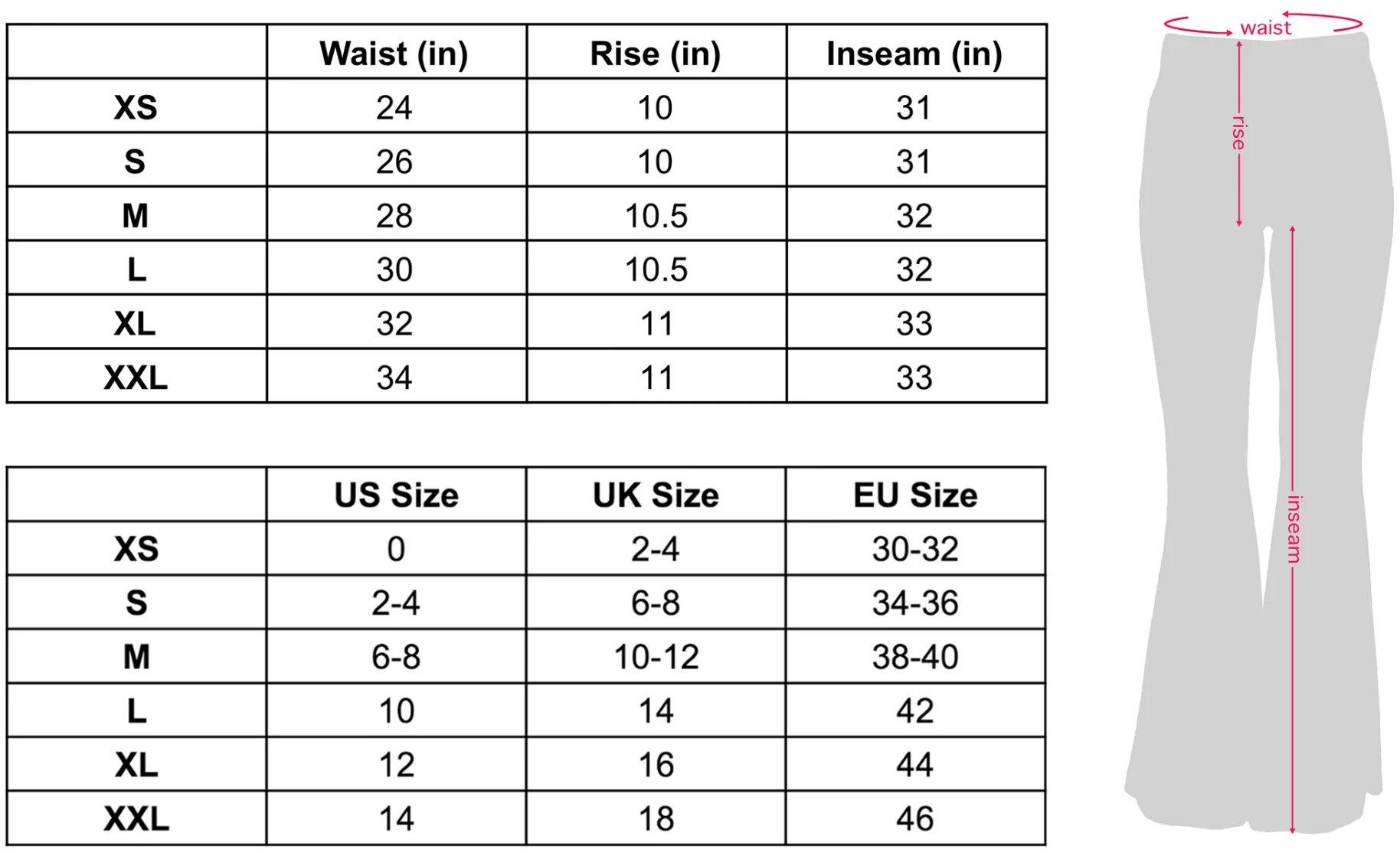 High waisted with a dramatic flare, they are gorgeously flattering and slimming on many body types. Stretch knit material make them super comfortable and versatile.