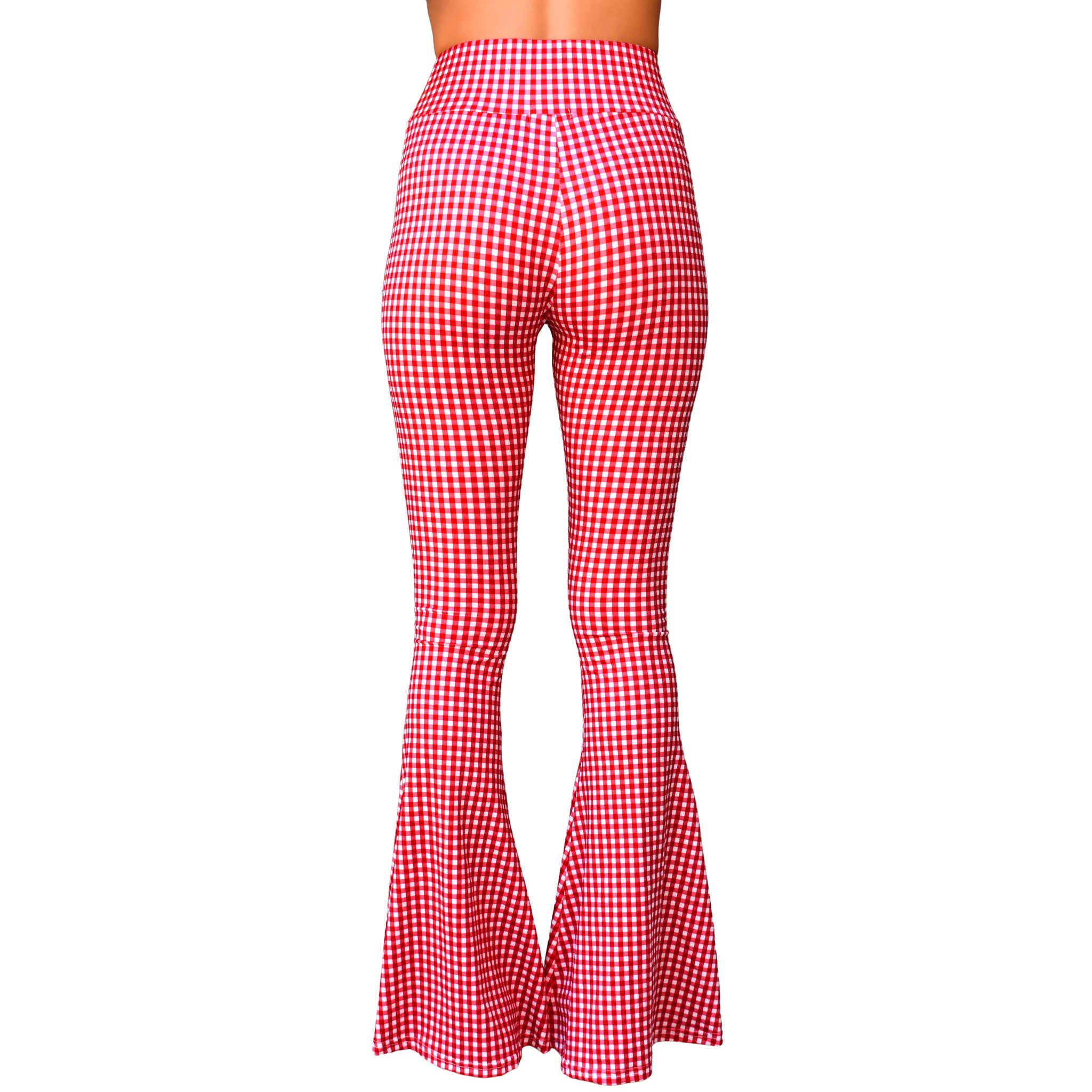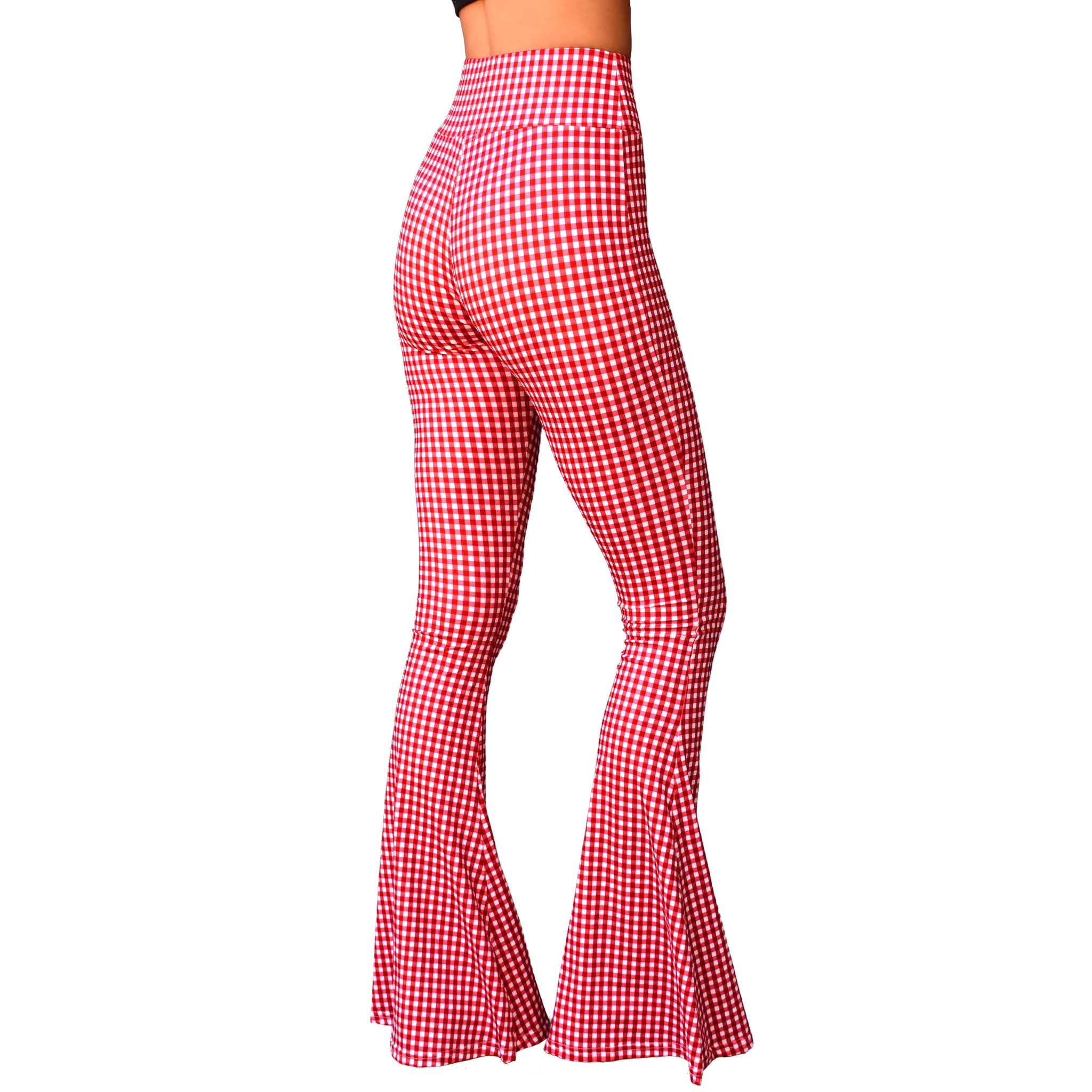 High waisted with a dramatic flare, they are gorgeously flattering and slimming on many body types. Stretch knit material make them super comfortable and versatile.