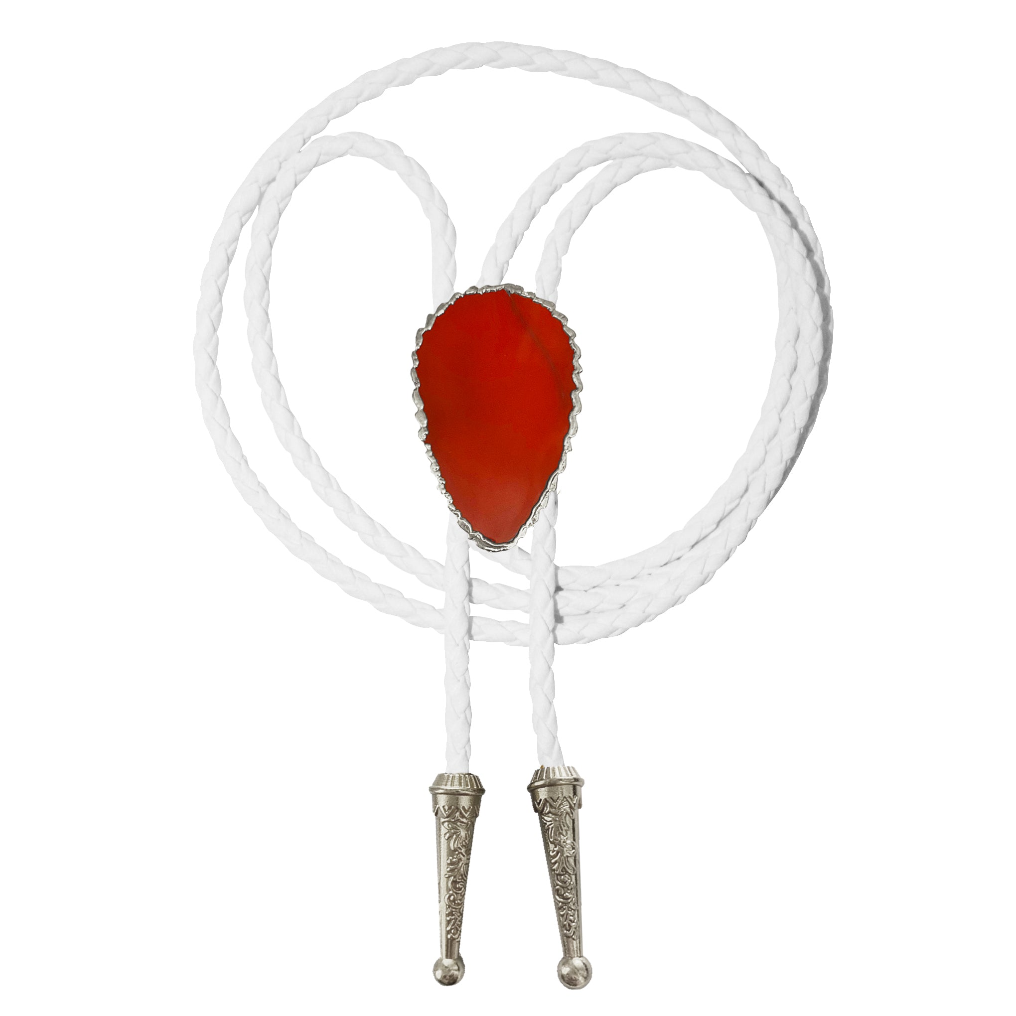 This boho western style bolo tie necklace features a Red Jasper sparkling gemstone with silver trim on braided vegan leather with silver bolo tips. The stone slides up and down to adjust size and increase the opening to easily get the necklace on and off.