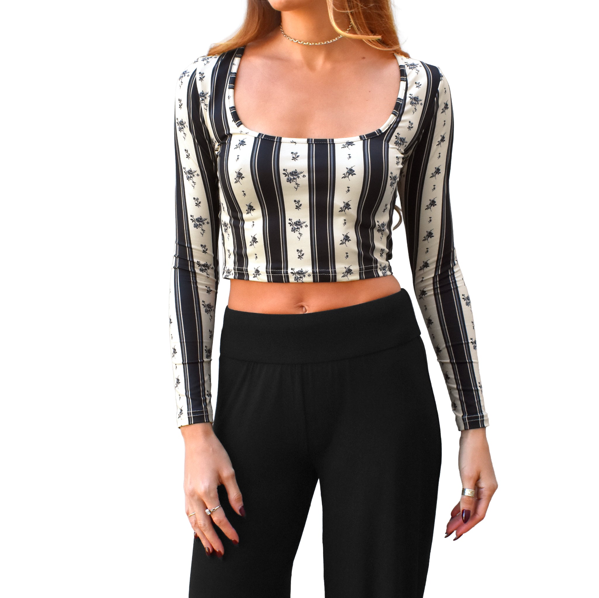 This cute top features a deep low cut square neckline, long sleeves, cropped short length and a tight fit for a sleek and flattering silhouette. It is made in high quality, ultra soft, four-way stretch knit material, making it super comfortable and a great option for all seasons. Available in a variety of prints and solid colors including leopard, cowhide, coquette florals, gingham, heather grey and solid black. Love a set? Browse our collection for matching bottoms.