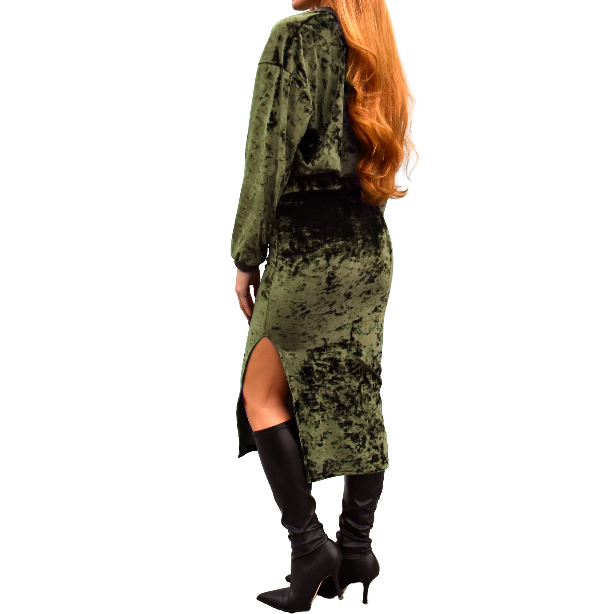 • Load image into Gallery viewer, Velvet Crewneck Top - Olive Green