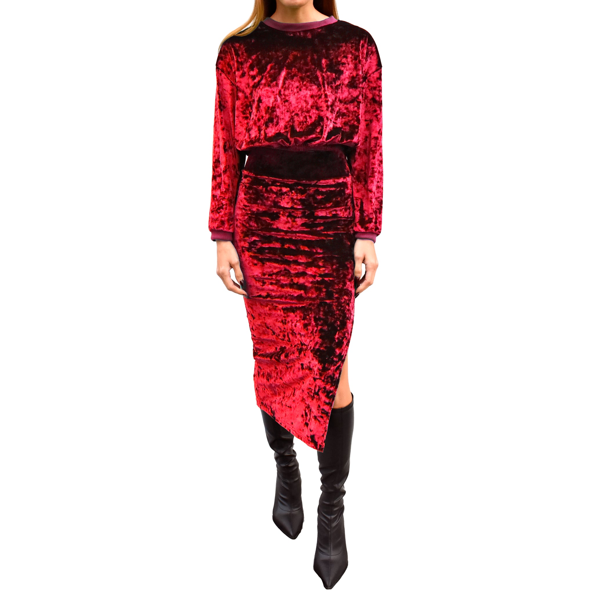 • Load image into Gallery viewer, Velvet Crewneck Top - Red