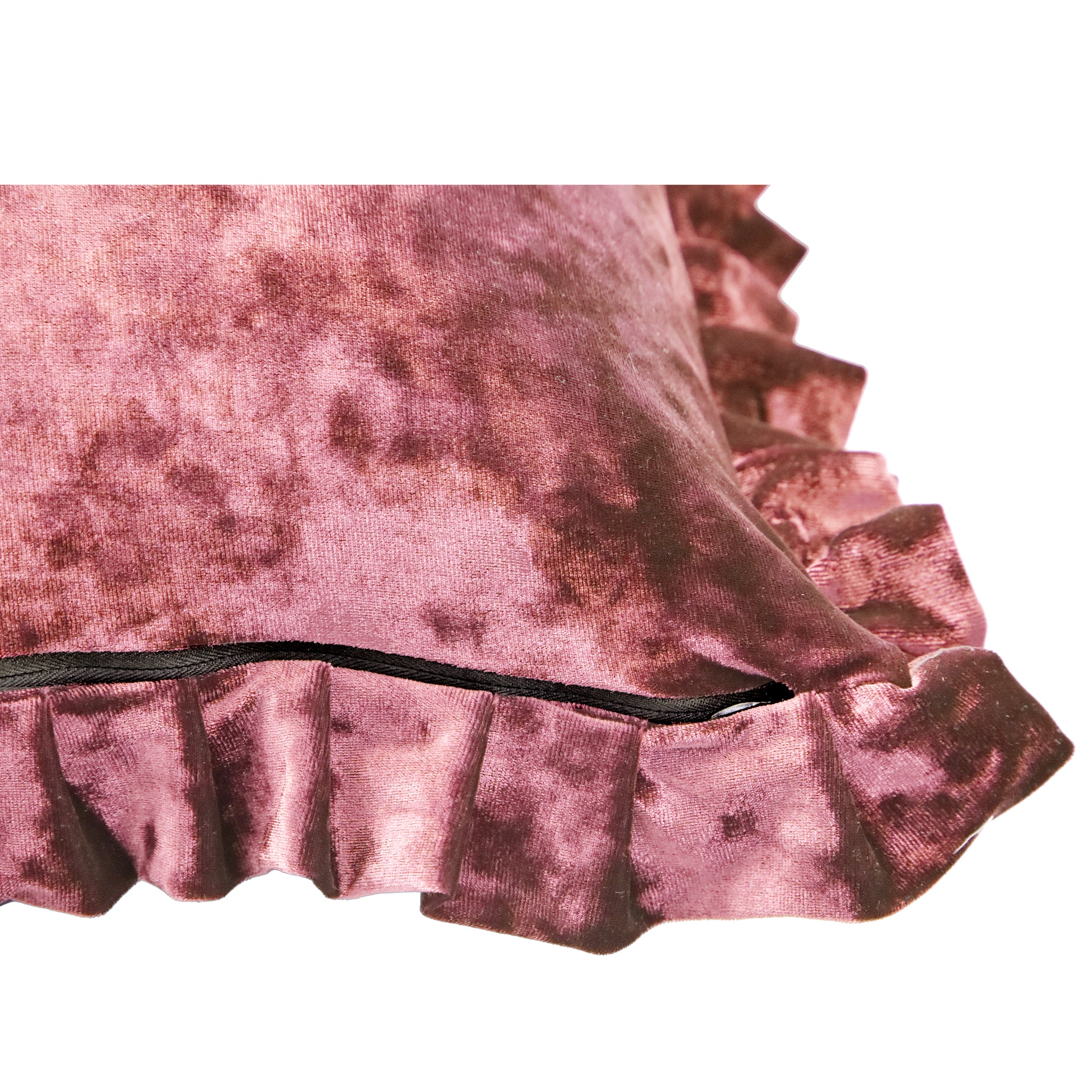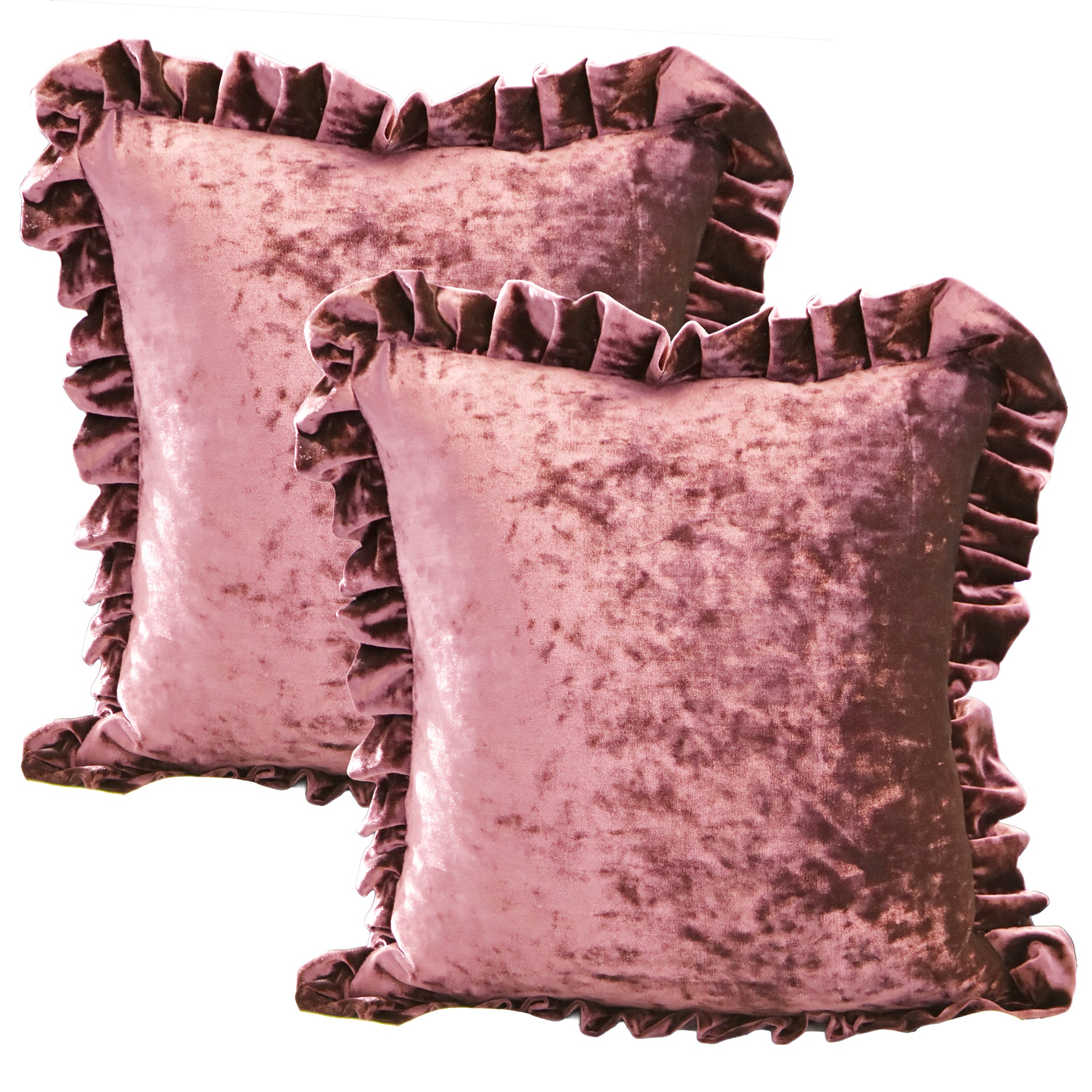 These beautiful pillow covers feature lush crushed velvet material in gorgeous jewel tones with a decorative ruffle trim, and a hidden zipper for easy closure. They are perfect for adding a stylish accent to your bed, couch or sofa. They fit on most standard square throw pillows and can mix and match for a variety of looks. They are easy to remove and machine washable. These luxurious decorative pillowcases are available in several solid colors and come in matching sets of two. Choose from black, indigo blue, dusty rose pink, burgundy red, olive green and dark emerald green.