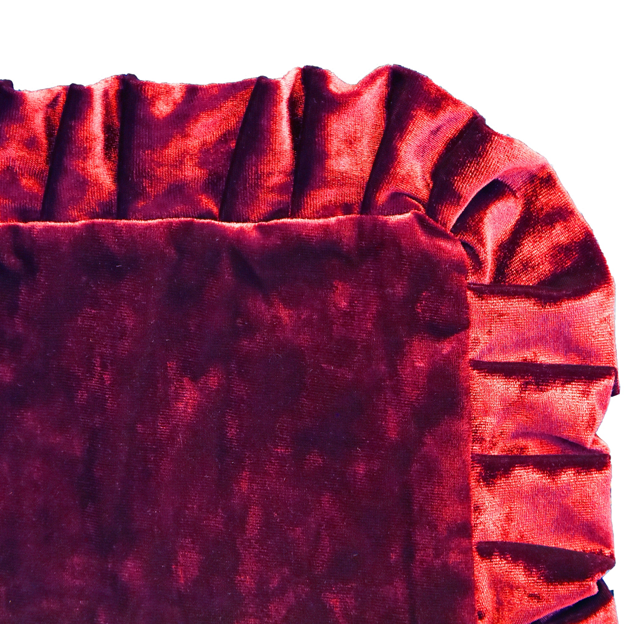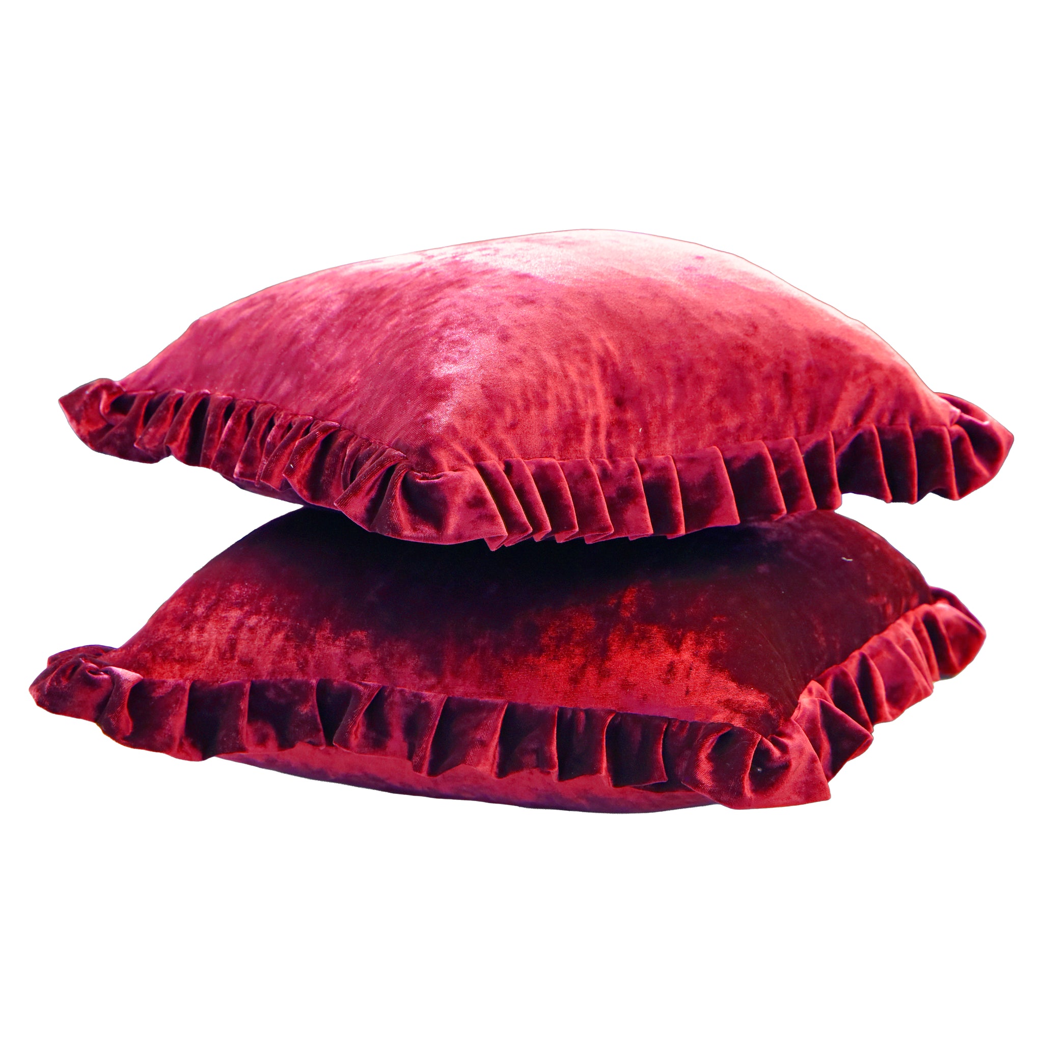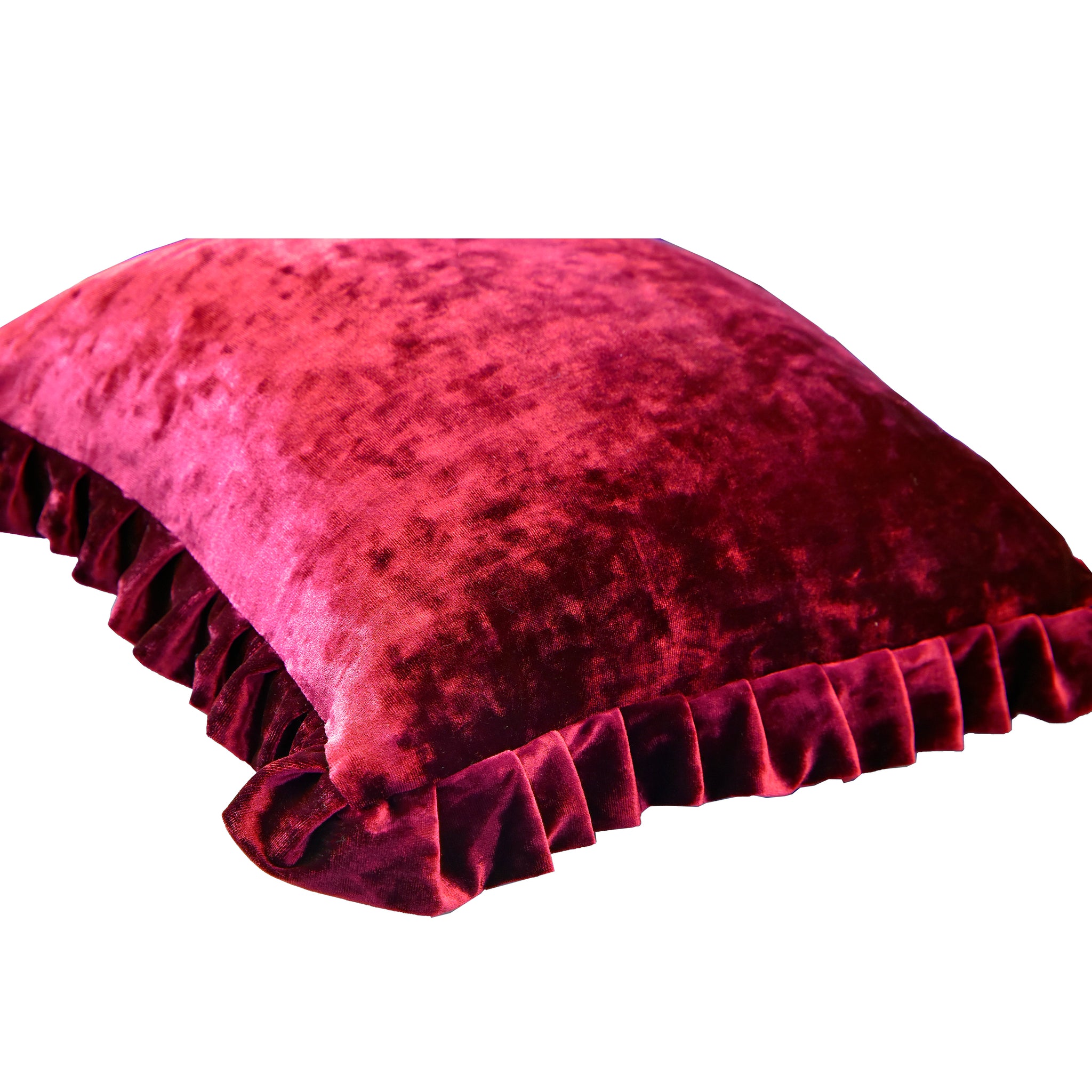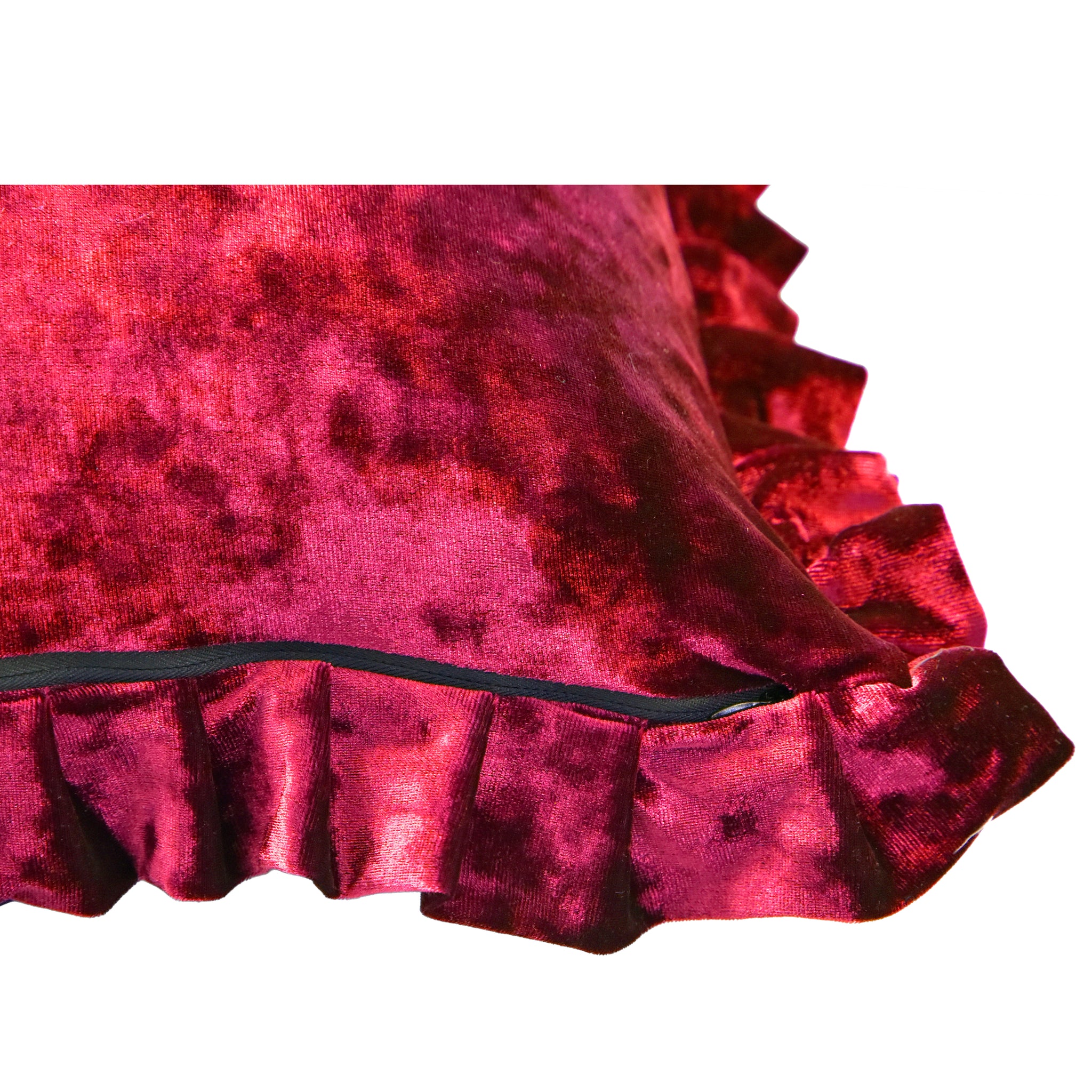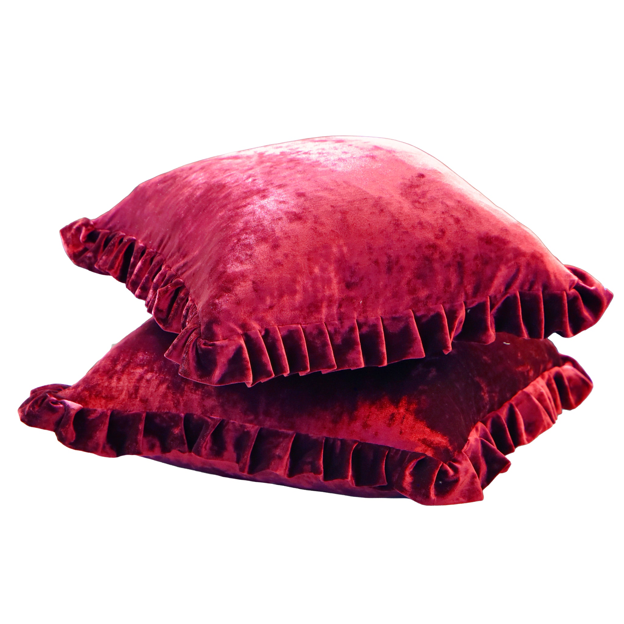 These beautiful pillow covers feature lush crushed velvet material in gorgeous jewel tones with a decorative ruffle trim, and a hidden zipper for easy closure. They are perfect for adding a stylish accent to your bed, couch or sofa. They fit on most standard square throw pillows and can mix and match for a variety of looks. They are easy to remove and machine washable. These luxurious decorative pillowcases are available in several solid colors and come in matching sets of two. Choose from black, indigo blue, dusty rose pink, burgundy red, olive green and dark emerald green.