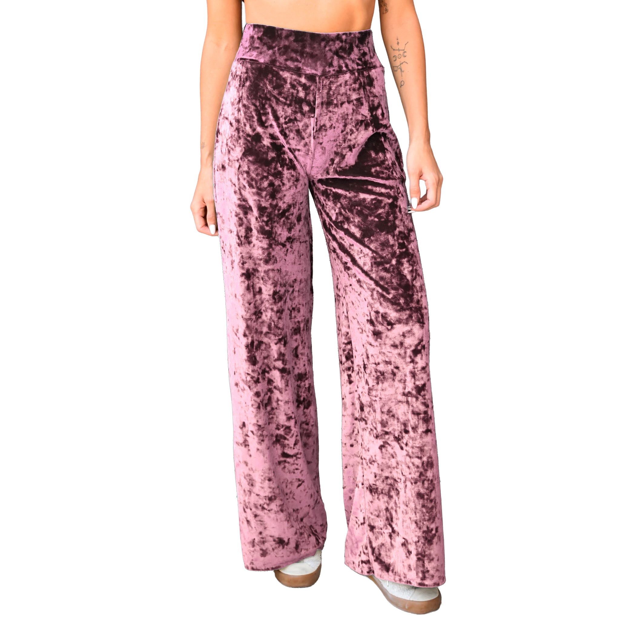 • Load image into Gallery viewer, Velvet Wide Leg Pants - Dusty Rose