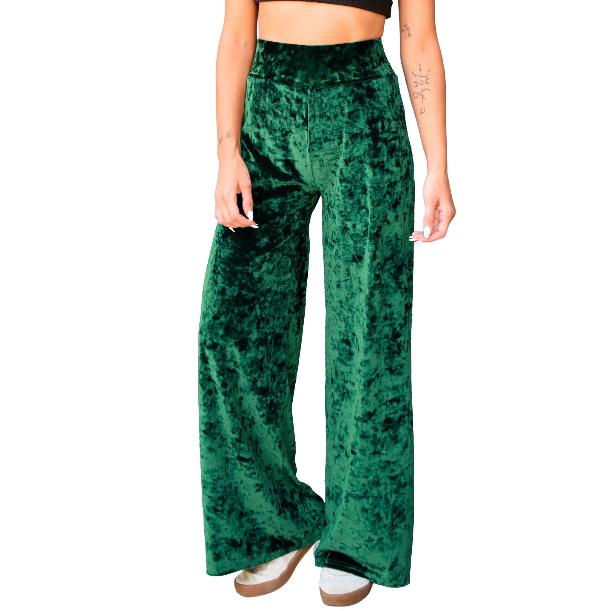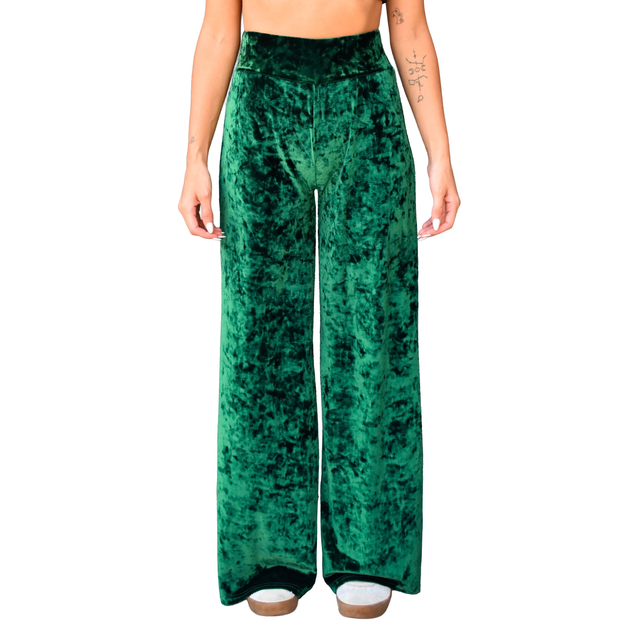 • Load image into Gallery viewer, Velvet Wide Leg Pants - Emerald Green