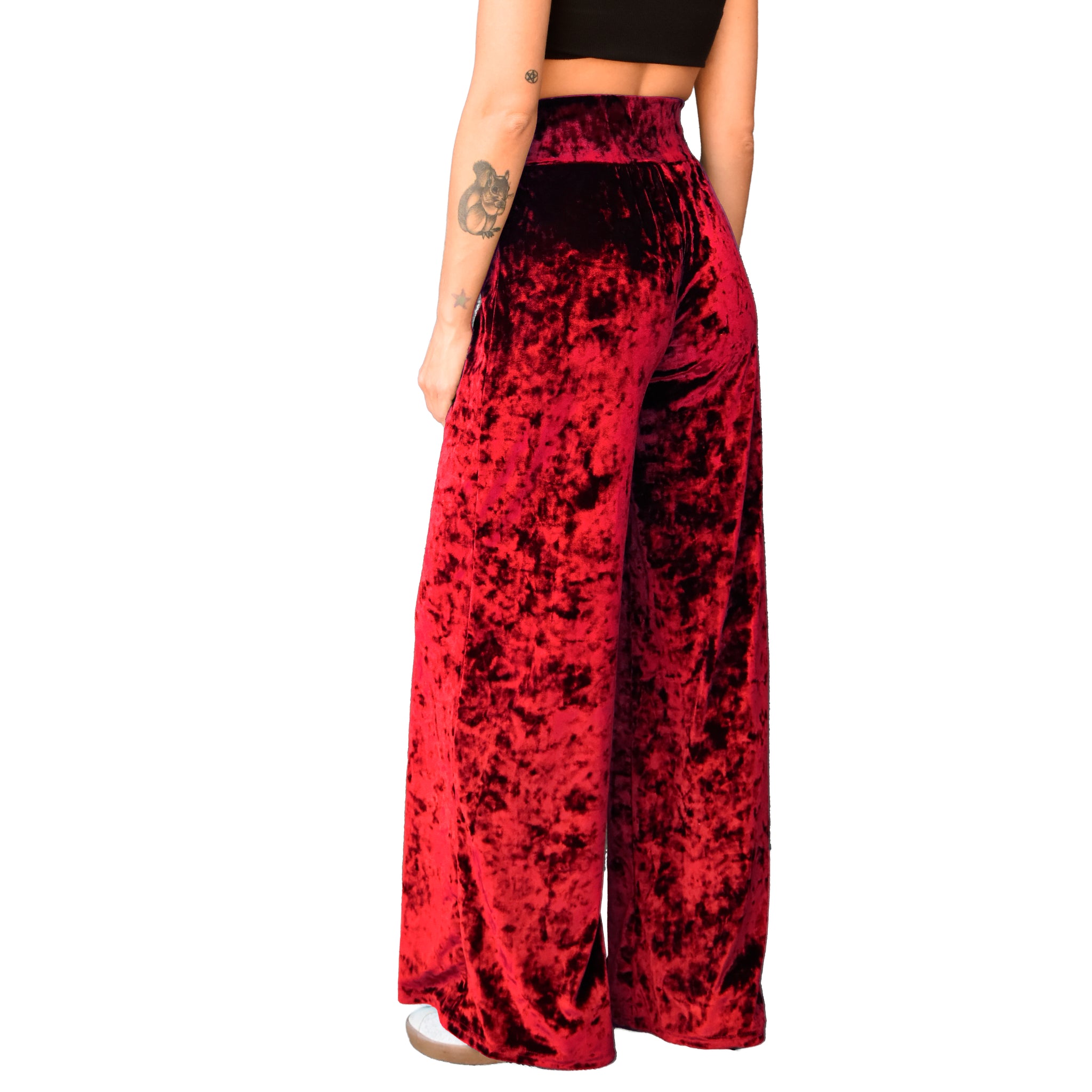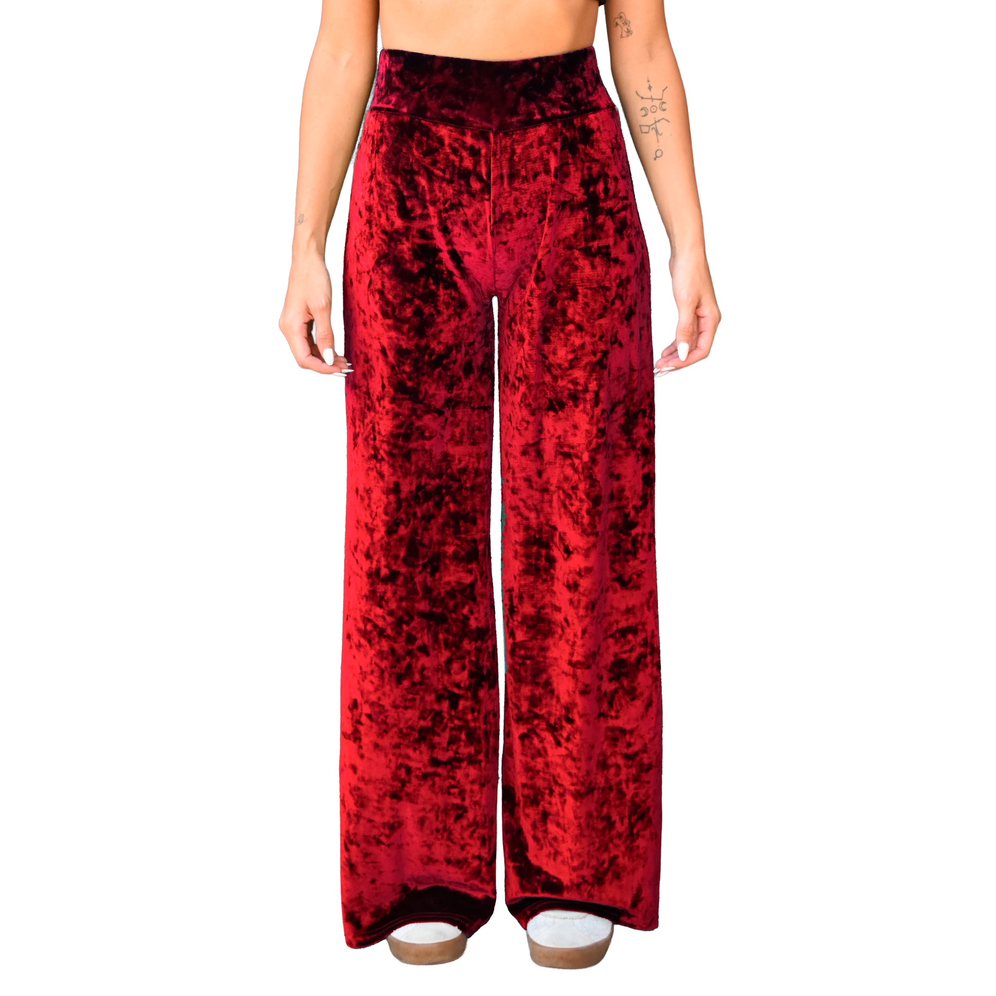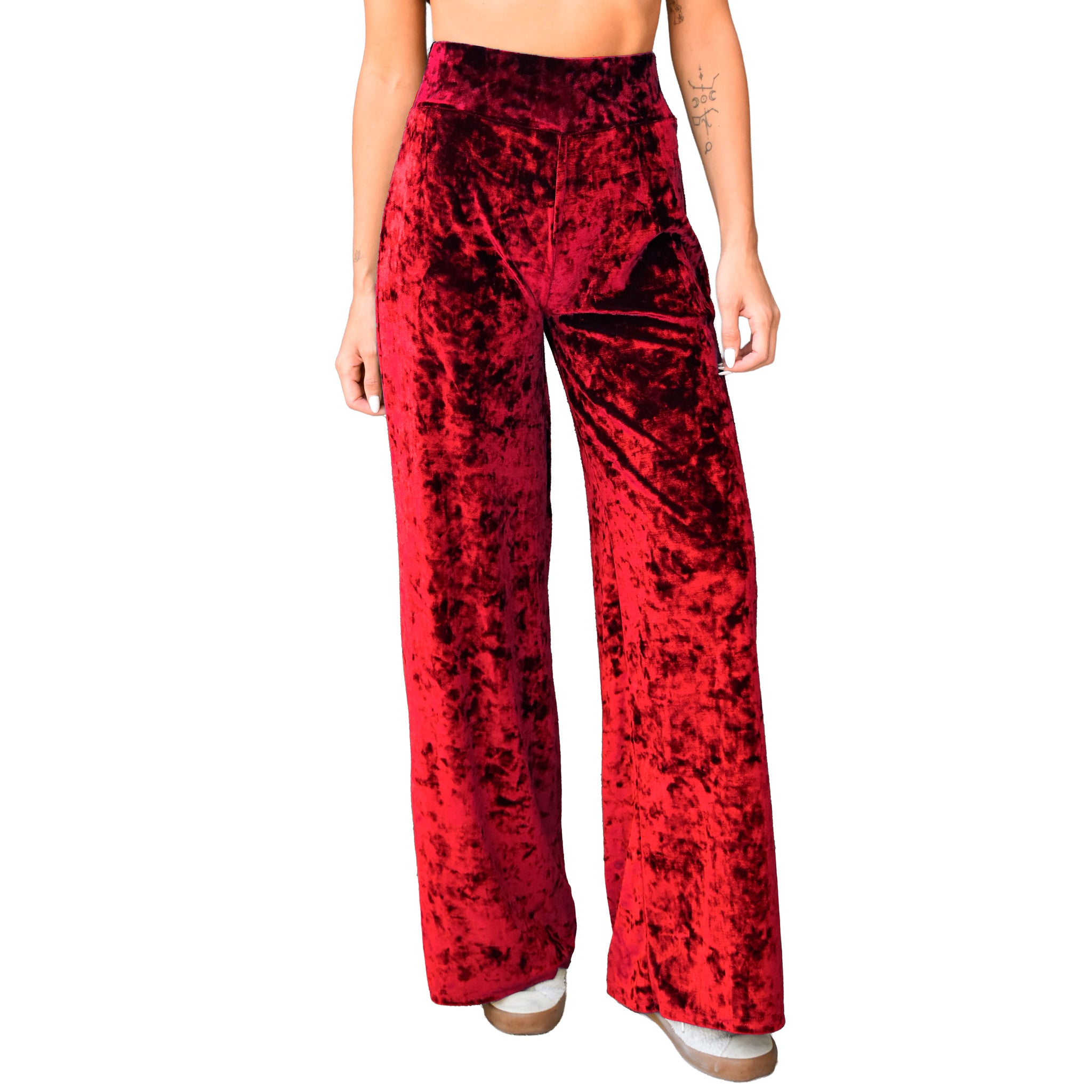 Velvet Wide Leg Pants - Red